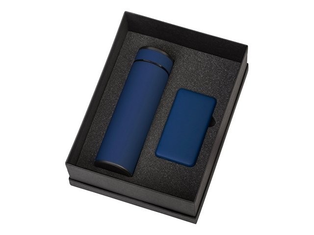 Подарочный набор с термосом и повербанком С2, темно-синий
