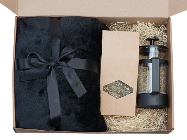 Набор продуман до мелочей. Когда зимним вечером подходит время чая, хочет завернуться в мягкий и теплый плед и наслаждаться любимым напитком, который можно заварить во френч прессе, входящем в комплект. Набор упакован в стильную крафтовую коробку.