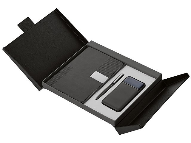 Подарочный набор в элегантной коробке на магните —это практичный и красивый подарок, который точно пригодится в жизни. Внутри блокнот на 96 листов плотной бумаги 80 г/м² с FSC-сертификатом, металлическая шариковая ручка с синими немецкими чернилами Dokumental и швейцарским узлом Premec. Пауэрбанк на 10 000 mAh с 3 видами кабелей: Lightning, Type-C и USB обеспечит заряд в любой ситуации.