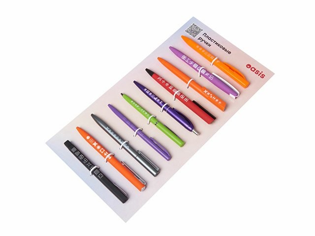 Промо-сет пластиковых ручек — это презентационный комплект, включающий 10 уникальных моделей с несколькими вариантами нанесения: УФ-печать, тампопечать и трафаретная печать.