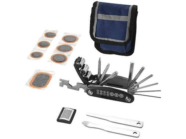 Расчет нанесенияРемкомплект для велосипеда Wheelie. Многофункциональный инструмент «15 в 1» с 2 инструментами для демонтажа шин, рашпилем, клеем и заплатками, чехлом со светоотражающей каймой и 2 ремешками с застежками на липучке для крепления к велосипеду.