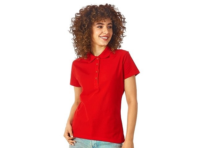 Женская рубашка-поло First. Воротник 1х1. Обшивка внутри воротника. Мужская и детская модели с 2 пуговицами, женская - с 4 пуговицами. Пуговицы с гравировкой в тон. Пике, 100% хлопок. 160 г/м2.