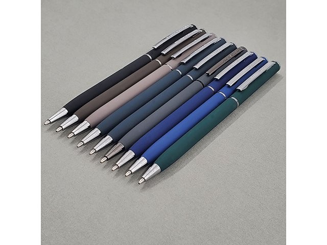 Автоматическая металлическая ручка "Bruno Visconti" серии "Palermo" однотонного цвета порадует любителей всего изящного и утонченного. Покрытие корпуса Soft Touch гарантирует дополнительный комфорт в работе с ней. Стержень легко выдвигается благодаря поворотному механизму. Синие пигментные чернила Dokumental (Германия) и пишущий узел Premec (Швейцария) обеспечивают качественное и мягкое письмо.
