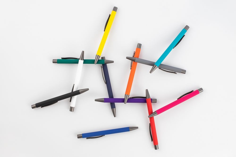 Механизм ручки: нажимной. Корпус ручки разбирается, стержень можно заменить. Стержень с масляными синими чернилами. Длина линии письма: 1000 м. Гравировка по цветным частям корпуса получается серебристой.