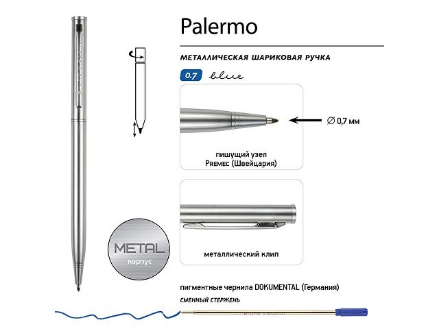 Ручка шариковая автоматическая BrunoVisconti® "PALERMO" цвет корпуса серебряный, 0.7 мм