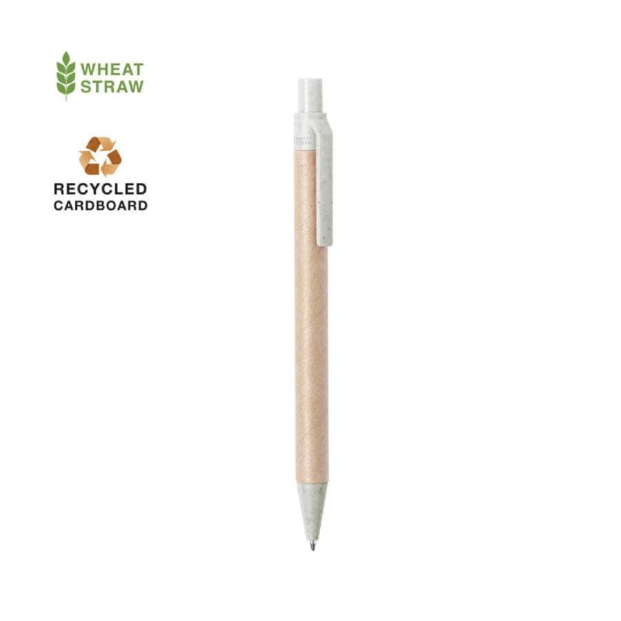Ручка шариковая DESOK, бежевый, переработанный картон, пшеничная солома, ABS пластик, 13,7 см, бежевый