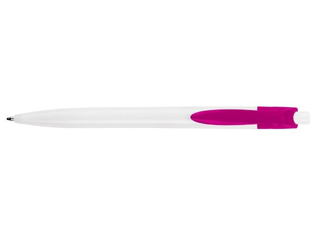 Стильная пластиковая ручка с ярким цветным клипом и белым корпусом отлично подойдет для нанесения логотипов и рекламной информации. Нажимной механизм.