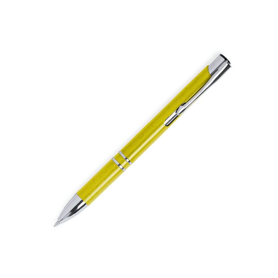 Ручка шариковая NUKOT, желтый; пластик со стружкой пшеничной соломы, хром; синие чернила, желтый