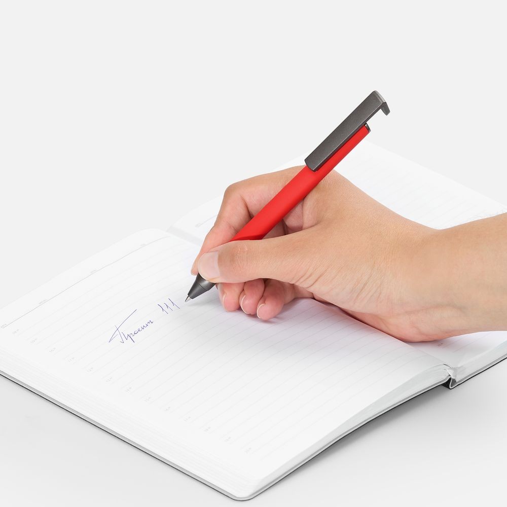 Шариковая ручка Standic привлекает внимание не только современным дизайном и ярким цветом корпуса, но и необычным функционалом — благодаря особенной форме клипа ручка может служить еще и подставкой для телефона. Треугольное сечение корпуса делает ручку устойчивее, а площадь нанесения больше.