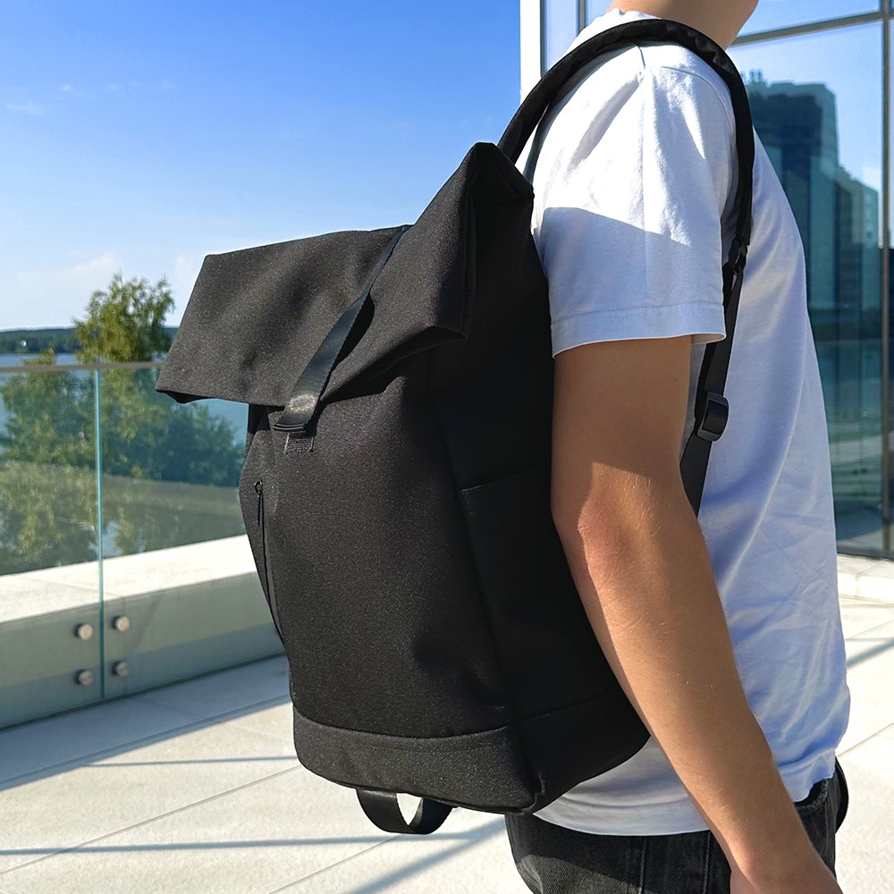 Трендовый и лаконичный городской ролл-топ рюкзак ATAKAMA. Его особенности Его особенности - сочетание минималистичного дизайна и - сочетание минималистичного дизайна и вместительности делают эту модель отличным спутником в городских джунглях. Одно большое отделение закрывается на молнию и дополнительно фиксируется тесьмой на липучку-велько. Сбоку два открытых кармана для бутылки, зонта и прочих необходимостей. Внутри уплотнённый карман для ноутбука 17 дюймов с клапаном на велькро и карман-органайзер. На передней стенке вертикальный карман на влагостойкой прорезиненной молнии со скрытым звеном. Уплотнённая задняя стенки распределяет вес и снижает нагрузку на позвоночник. Уплотнённые плечевые ремни регулируются по длине. Размер: 42 (29 по дну)*45 (62 в развёрнутом виде)*13 см Материал товара: Полиэстер с водонепроницаемой пропиткой Плотность: 600D Рекомендуемая максимальная нагрузка: не более 10 кг. Вместимость: 15 л. Вес: 0.55 кг Возможно добавление пуллеров (арт. 4093) в количестве 2 шт в семи вариантах цвета и нанесение на них УФ печати Возможна кастомизация с помощью ремувки (арт. 4094, 4097) в восьми вариантах цвета и нанесение на неё термопечати