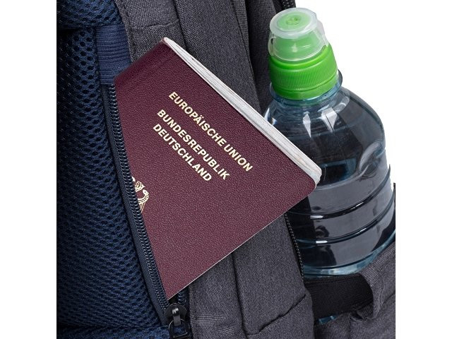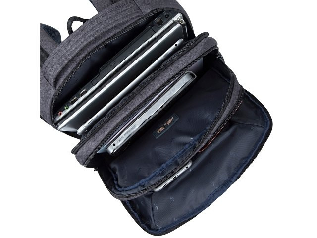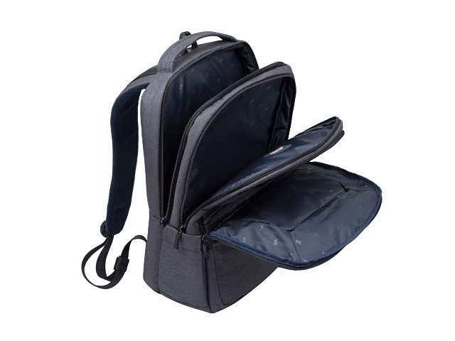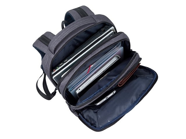Рюкзак для ноутбука до 16". Описание: • Рюкзак в спортивном стиле из высококачественной, водоотталкивающей ткани. • Легкий, но имеет утолщенные стенки для защиты ноутбука от случайных ударов и царапин, а также от пыли и влаги. • Основное отделение для ноутбука с вертикальной загрузкой имеет дополнительный внутренний карман для планшета до 10.1". • Внешнее переднее отделение на молнии для хранения аксессуаров, также оборудовано панелью-органайзером для хранения визитных карт, флэш-накопителей, смартфона. Также на передней панели карман на молнии для различных мелочей. • Дополнительное просторное отделение для хранения книг, документов, вещей необходимых в путешествии. • Два боковых кармана для ёмкостей с водой. • Двойная застежка молния для удобного доступа к устройству. • Удобная мягкая ручка для переноски и наплечные ремни со смягчающими подкладками помогут чувствовать себя комфортно в самом долгом путешествии. • На задней стенке имеется ремень крепления к багажной сумке и скрытый карман на молнии для паспорта, бумажника. • Специальная система крепления ремешков на липучке закрепляет их и создает дополнительное удобство.