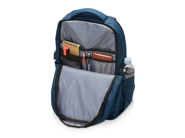 Удобный рюкзак для делового человека с двумя вместительными отделениями, в котором предусмотрено все до мелочей: - отделение с карманом для ноутбука 15.6' - отделение с органайзером - наружный карман на молнии -затрудненный несанкционированный доступ к отделению для ноутбука и планшета благодаря тому, что молния смещена к спинке - задний потайной карман с молнией на спинке - 2 боковых кармана на резинках, что позволяет им регулироваться по ширине под бутылки разного диаметра - ремень для крепления к чемодану - USB выход - дышащая сетчатая спинка - регулируемые по длине лямки