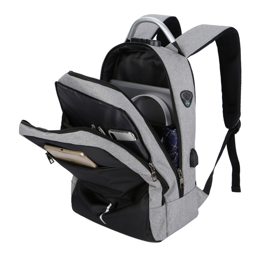 Ультрасовременный высокофункциональный городской рюкзак MADMA. Его особенности - два отделения, множество карманов, прочная алюминиевая ручка, кодовый замок и световозвращающие элементы, делают этот рюкзак незаменимым для путешествий. КОДОВЫЙ ЗАМОК - программируется комбинацией из трёх цифр (по умолчаню: 0-0-0). Два отделения закрываются на молнии. В заднем отделении уплотненный карман для ноутбука 15,6 дюймов и карман-органайзер. В переднем открытый карман-сетка. На передней стенке из контрастного ультрапрочного полиэстера с сатиновым переплетением и водо- и грязеотталквающей пропиткой скрыт карман на молнии. Сбоку USB-разъем с проводом для подключения внешнего аккумулятора и накладка с прорезью для наушников. 3D-сетка на подкладке плечевых ремней и накладка задней стенки предотвращает скольжение и обеспечивает дополнительную вентиляцию и комфорт при контакте с кожей и одеждой. Двойное уплотнение анатомических накладок на задней стенке распределяет вес рюкзака и снижает нагрузку на позвоночник. Специальная накладка для чемодана на задней стенке делает этот рюкзак незаменимым спутником для путешествий. Уплотнённые плечевые ремни регулируются по длине и имеют один небольшой дополнительный открытый карман для карт, ключей и прочих мелочей. Размер: 44*29*16 см Материал: Полиэстер с водонепроницаемой пропиткой Плотность: 300D Цвет по PANTONE® (максимально приближен): Cool Gray 8C / black Рекомендуемая максимальная нагрузка: не более 10 кг. Вместимость: 19 л. Вес: 0,59 кг. Возможно добавление пуллеров (арт. 4093) в количестве 5 шт в семи вариантах цвета и нанесение на них УФ печати Возможна кастомизация с помощью ремувки (арт. 4094, 4097) в восьми вариантах цвета и нанесение на неё термопечати Возможна установка шильды (арт. 4090, 4091, 4092) на передний карман и нанесение на неё гравировки / тампопечати