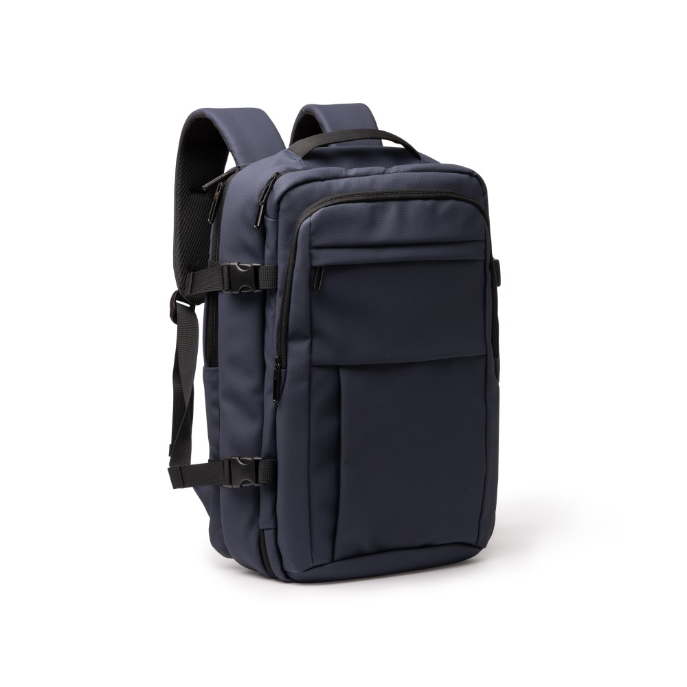 Универсальный дорожный рюкзак OREGON сделан из искусственной кожи. Специальнаая молния и стяжки-фиксаторы позволяют увеличивать размер рюкзака и фиксировать дополнитеьные предметы (куртку, коврик и т.п.) снаружи.Раскладывается на 180 градусов.Множество внутренних и наружных прибамбасов и карманов: для одежды и других вещей, органайзера для мелочей, ходера для крепления ключей, уплотнённых карманов для ноутбука до 15 дюймов, планшета и прочих гаджетов.Уплотнённые плечевые ремни, задняя стенка, две коротких ручки. Держатель для чемодана и дополнительная фиксация плечевых ремней.Задняя стенка закрыта вентилируемой и гигроскопичной 3D-стенкой и скрытым карманом для документов.