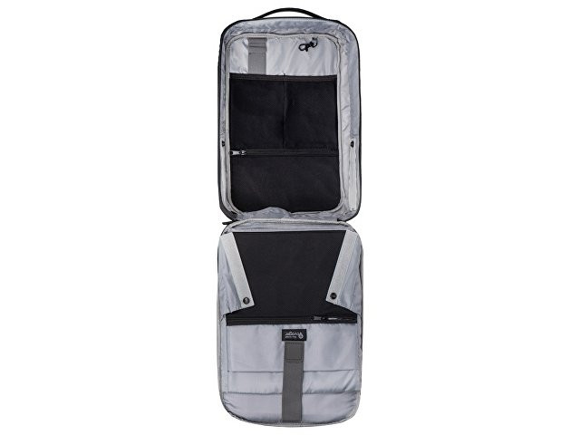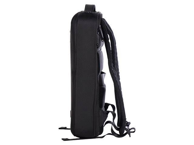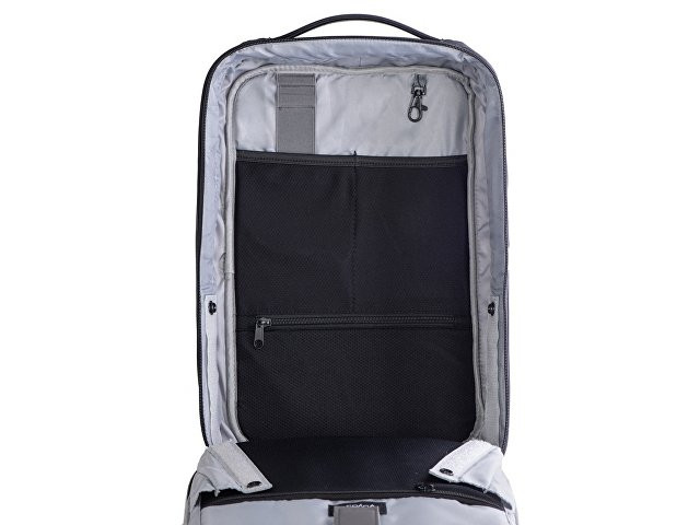 Бизнес-рюкзак с каркасом, позволяющим сохранять идеальную форму. - карманы для ноутбука и планшета на эластичных креплениях - потайной карман на молнии на спинке - спереди наружный карман для документов - органайзер с сетчатыми карманами на молниях внутри - карабин для ключей - ремень для крепления на ручку чемодана - степень раскрытия рюкзака регулируется боковыми фиксаторами на липучках и кнопках - сетчатая спинка - лямки регулируются по длине - нетканый мешок для хранения в комплекте