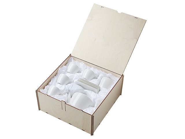 Сервиз поставляется в деревянной коробке. Вы можете нанести на нее логтип или памятную надпись. Это готовая идея для безупречного корпоративного подарка.