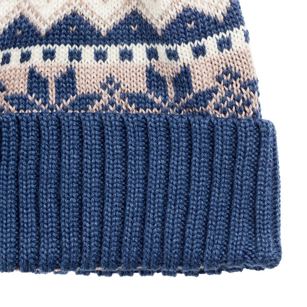 Модель: шапка с жаккардовым узором в 2-3 цвета и отворотом в 1 цвет, помпон 8 см, крупная петля. Шапка некроеная, с макушкой на стяге, которая всегда будет однотонной. Узор максимально простой и графичный, без сложных мелких деталей.