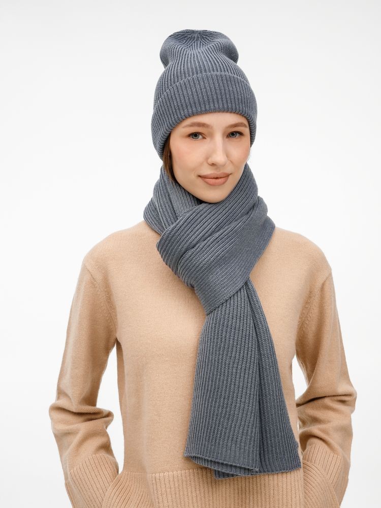 Удлиненный силуэт шапки Nobilis Mono из мягкой полушерстяной пряжи с широким отворотом создает стильный современный образ, а фактурная вязка добавляет объем и выразительность.