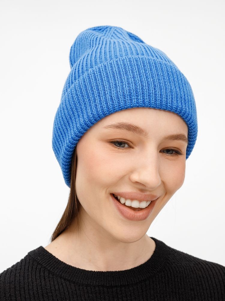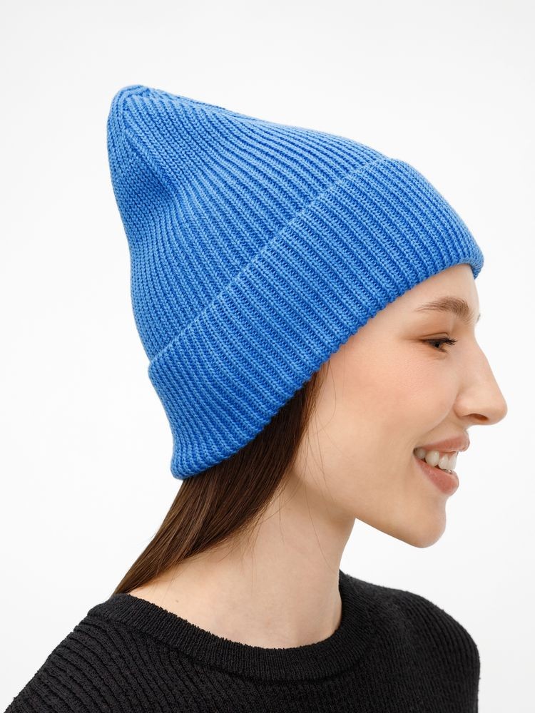 Однослойная шапка фактурной вязки с отворотом.