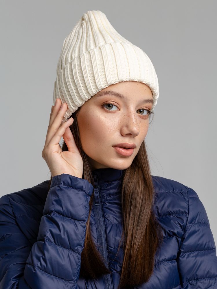Однослойная шапка фактурной вязки с флисовой подкладкой.