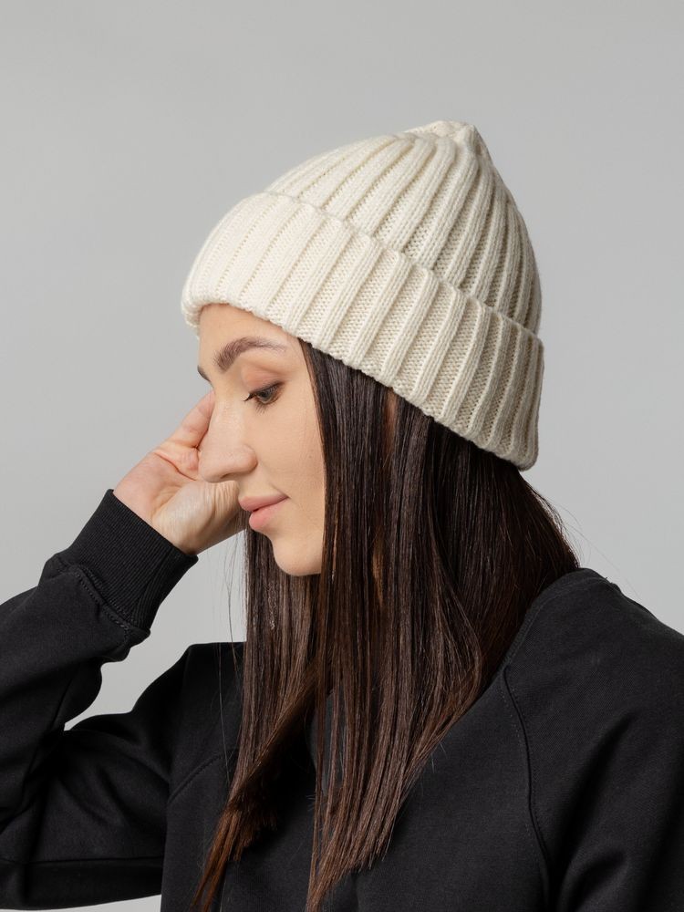 Модная шапка-бини, связанная резинкой, универсальна и подходит для самых непосредственных и легких образов.