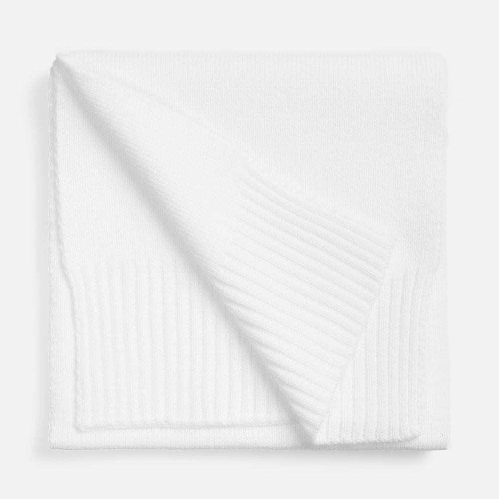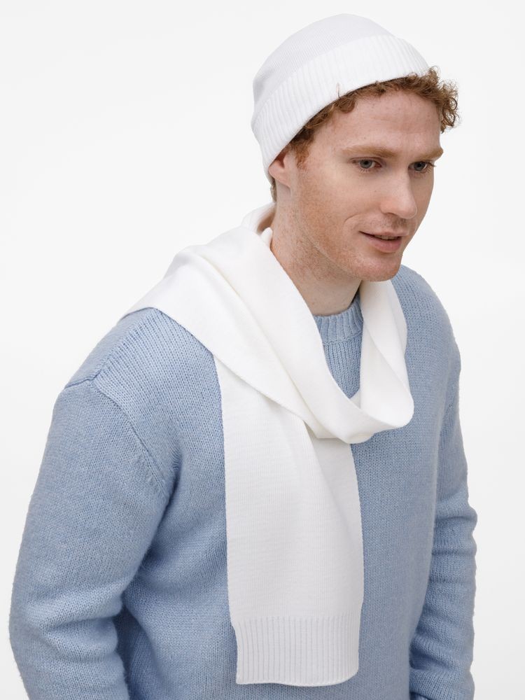 Классический однослойный шарф гладкой вязки. Края, связанные резинкой, придают изделию завершенный и аккуратный вид.