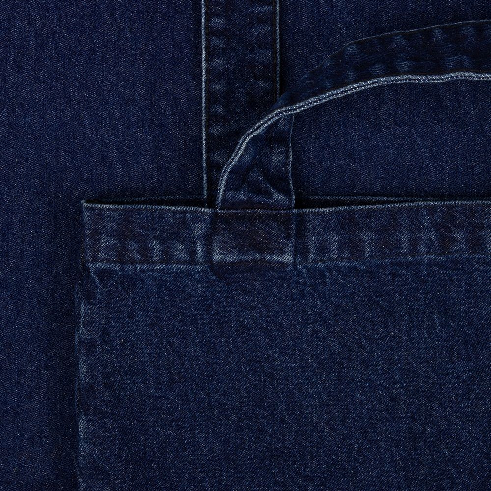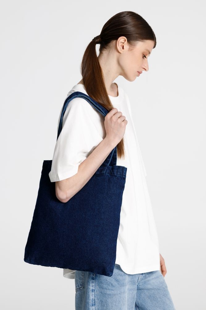 Базовый шопер из джинсовой ткани разработан в рамках единой коллекции и легко собирается в комплекты. Специально спроектированные лекала и технологии пошива открывают простор для любых вариантов кастомизации и нанесения изображений. На видимой части изделий нет лейблов с айдентикой бренда, а название бренда с уходника легко удалить.