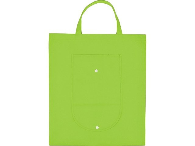 Вместительная складная сумка из нетканого материала с открытым основным отделением и карманом на пластиковой кнопке спереди. Многоразовая сумка- отличная альтернатива пластиковому пакету. Высота ручек 15 см.