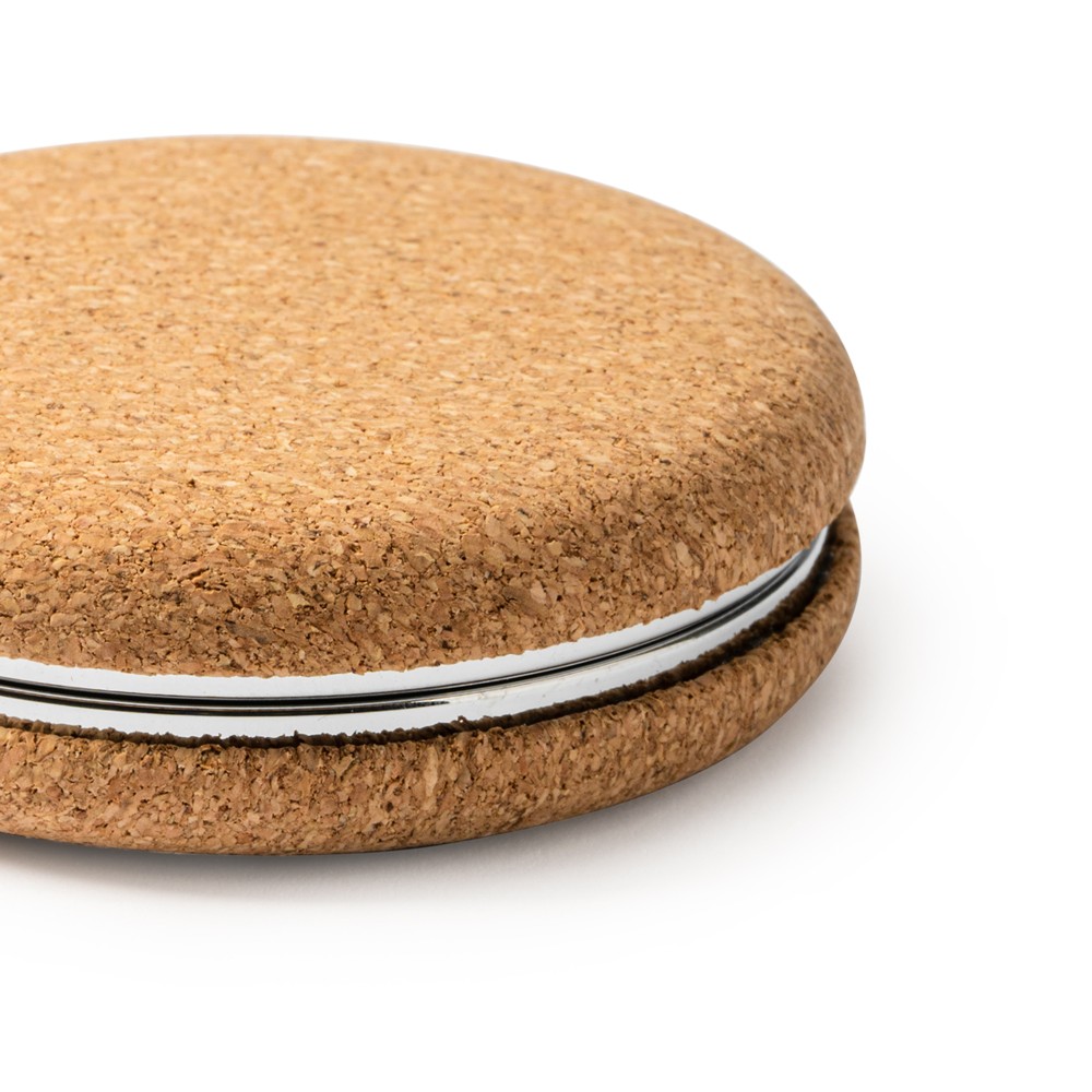 Складное двустороннее карманное зеркало из натуральной пробки и хромированного металла. Зеркало с увеличением 1x/2x.