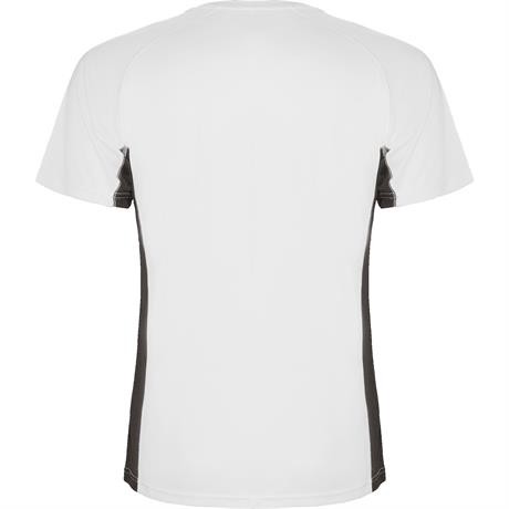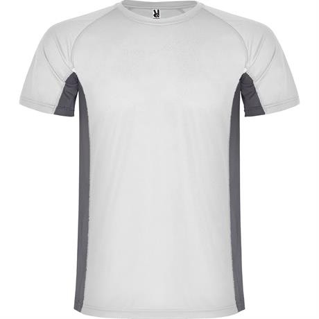 Спортивная футболка с короткими рукавами реглан, изготовленная из двух комбинированных тканей из полиэстера. Основная ткань — ткань bird's eye, а боковые вставки и рукав с внутренней стороны — с микроперфорированной ткани. Круглая горловина с усиленными