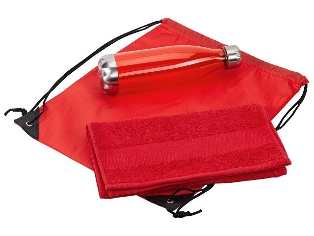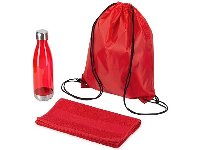 Универсальный спортивный набор будет актуален в любом виде спорта. Бутылка для воды позволит брать с собой не только воду, но и тонизирующие напитки или коктейли и поможет освежиться в любой момент. Тритан, из которого изготовлена бутылка, не искажает вкус и запах напитков, являясь абсолютно безопасным для человека. Натуральное полотенце из 100% хлопка не вызовет аллергии и не навредит коже. Вместительный рюкзак пригодится, чтобы всегда держать под рукой всё необходимое для тренировки. • объём бутылки: 700 мл • размер полотенца: 30х70 см • практичный набор для спортивного мерча