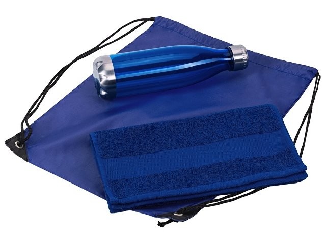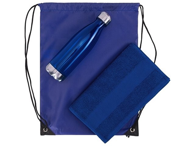 Универсальный спортивный набор будет актуален в любом виде спорта. Бутылка для воды позволит брать с собой не только воду, но и тонизирующие напитки или коктейли и поможет освежиться в любой момент. Тритан, из которого изготовлена бутылка, не искажает вкус и запах напитков, являясь абсолютно безопасным для человека. Натуральное полотенце из 100% хлопка не вызовет аллергии и не навредит коже. Вместительный рюкзак пригодится, чтобы всегда держать под рукой всё необходимое для тренировки. • объём бутылки: 700 мл • размер полотенца: 30х70 см • практичный набор для спортивного мерча
