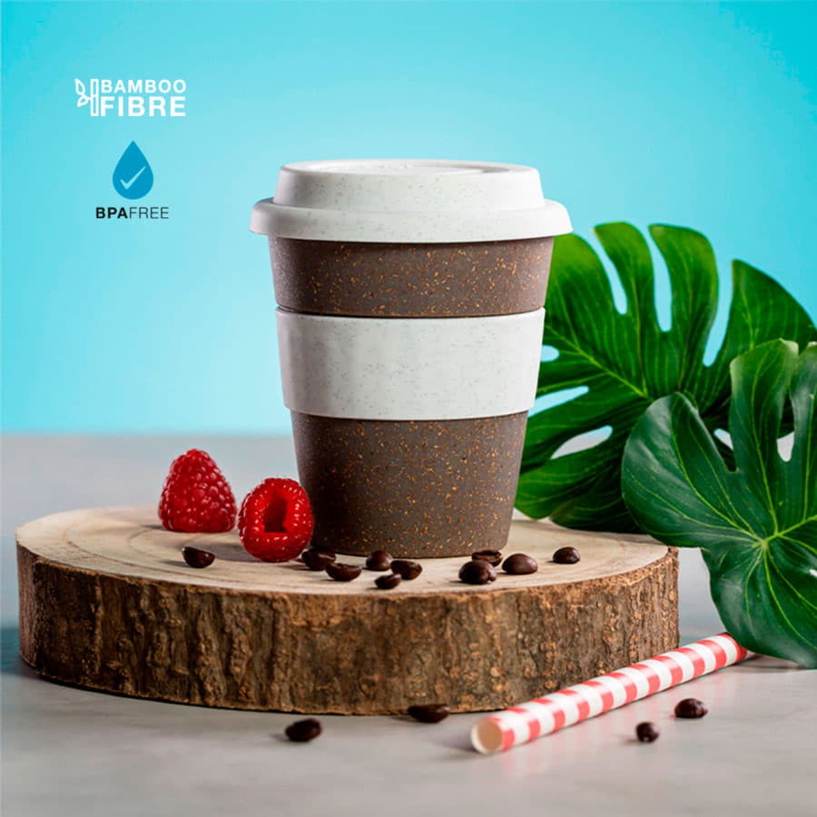 Стакан FLIKER с крышкой,полипропилен с бамбуковым волокном,силикон, бежевый