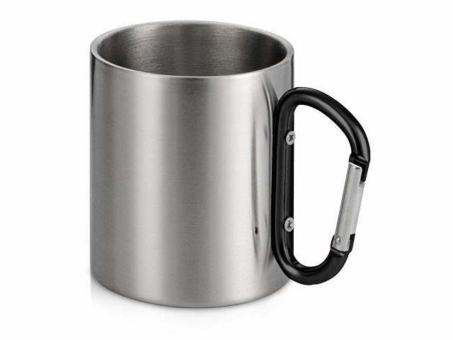 Стальная кружка Elbrus с двойными стенками и ручкой-карабином, 300 мл (глянцевая), черный