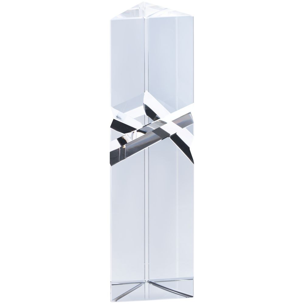 Эффектная стела-башня Prismart — тот случай, когда гордиться хочется не только достижениями, но и самой наградой! Благодаря необычному исполнению она создает своеобразную оптическую иллюзию: треугольные вырезы посередине будто делят саму стелу пополам и завораживающе отражаются в гранях.