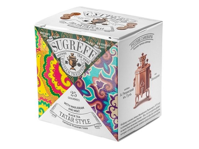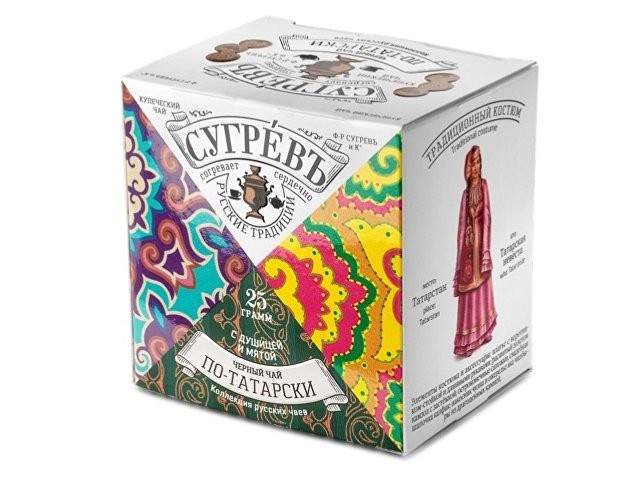 Чай «ПО-ТАТАРСКИ» сделан на основе купажа отборного цейлонского чая Pekoe c добавлением натуральных популярных трав Татарстана. Брусничный лист придаёт напитку лёгкую терпкость, а мята с душицей добавляют аромат и свежесть. При желании в этот чай можно добавить молоко, чтобы приблизиться к традициям татарского чаепития. Умный интеллигентный подарок для друзей, коллег, партнёров; оригинальный сувенир из России для иностранцев; небанальный подарок руководителю; презент для учителей, врачей и т.д.; вкусный чай для личного потребления.