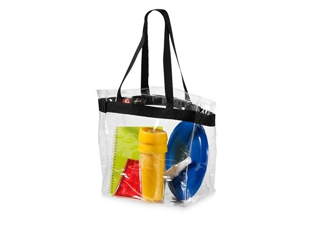 Эта прозрачная сумка отлично подходит для фанатов, которые предпочитают безопасно паковать свои принадлежности для стадиона и мероприятий. Она также подходит для работы и школы. Открытое основное отделение со спортивной сетчатой отделкой и двумя ручками. Высота ручек 27 см. Принадлежности не включены. ПВХ.