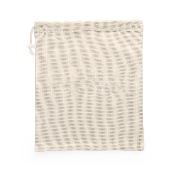 Сумка для фруктов eco line 100% хлопок 120 г/м². Натуральный цвет. Одна сторона сумки из мягкого хлопка, другая - из легкой сетки. Застежка на шнурке и прозрачный пластиковый регулятор.