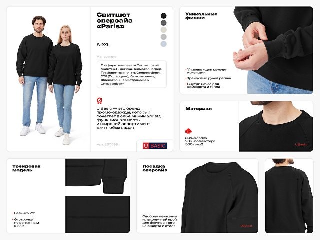 Главная особенность этого свитшота оверсайз — необычный рукав из двух частей: верхней — реглан до середины предплечья — и нижней, которая заканчивается резинкой. Благодаря такому необычному крою свитшот сидит комфортно по фигуре. Материал — теплый смесовый флис, комфортный и мягкий, который долго носится и не требует сложного ухода. Брендируется наиболее популярными для текстиля методами. - интересный крой рукава - внутренний начес - оверсайз — модный и актуальный силуэт - резинка по горловине, рукаву и низу свитшота для комфортной посадки