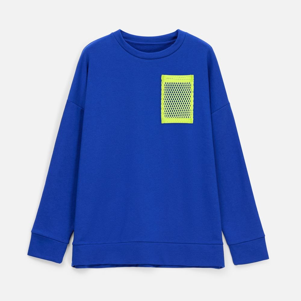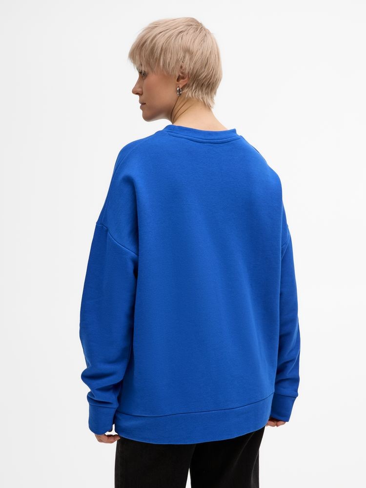 Свитшот унисекс свободной посадки со спущенным плечом.