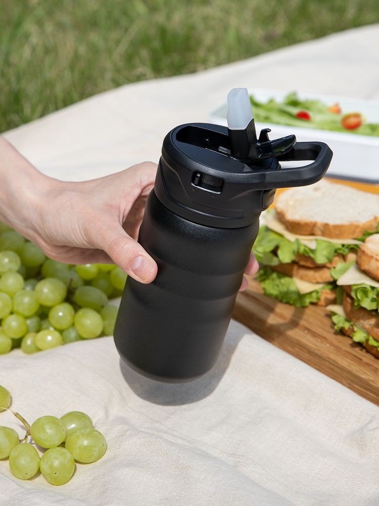 Конструкция с двойными стенками и вакуумной изоляцией сохраняет содержимое холодным до 24 часов, горячим — до 12 часов