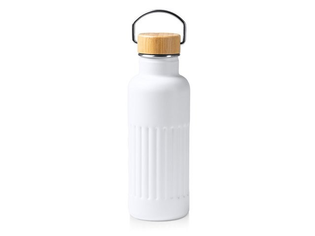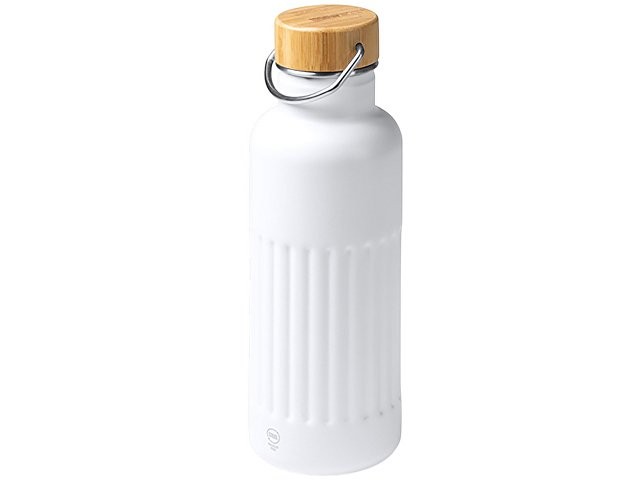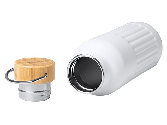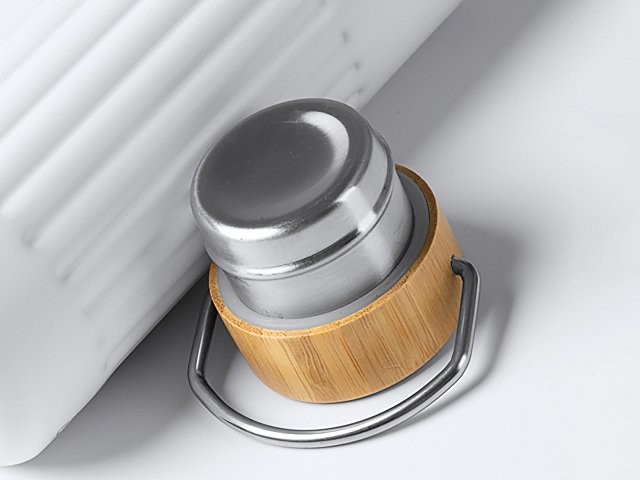 Термобутылка «Нобук» из переработанной нержавеющей стали, с бамбуковой крышкой, белый