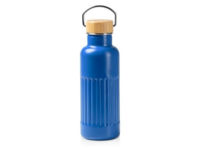 Термобутылка «Нобук» из переработанной нержавеющей стали, с бамбуковой крышкой, королевский синий