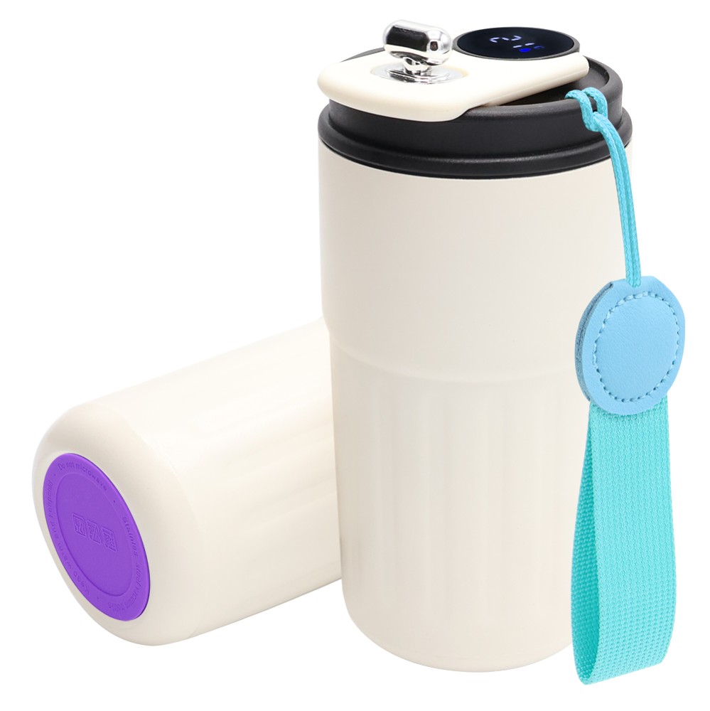 Термокружка Ashly с дисплеем выполнена из пищевой нержавеющей стали. Объем 400 мл. Имеет двойные стенки с вакуумной изоляцией, крышка изготовлена из пищевого безопасного для человека пластика. Особенностью термокружки Ashly является наличие сенсорного индикатора температуры, расположенного в крышке. Чтобы узнать температуру напитка внутри кружки, достаточно прикоснуться к поверхности крышки. Помимо этого, термокружка Ashly очень удобна в использовании. Просто нажмите на клапан в направлении дисплея, чтобы открыть верхнюю часть крышки и насладиться любимым напитком. Элегантный дизайн, удобство и функциональность - вот что делает термокружку Ashly незаменимым аксессуаром для всех любителей горячих и холодных напитков. В комплекте: шнурок, силиконовая накладка и фирменная коробка. Надежная крышка - качественные и безопасные материалы - двойные стенки из нержавеющей стали - сенсорный ЖК-дисплей - информация о температуре жидкости -отличные теплоизоляционные свойства - эргономичный дизайн - удобная форма! Термокружка подходит для большинства автомобильных подстаканников. Цвет шнурка, максимально близкий к пантону 2226С, цвет накладки максимально близкий к пантону 2077С.
