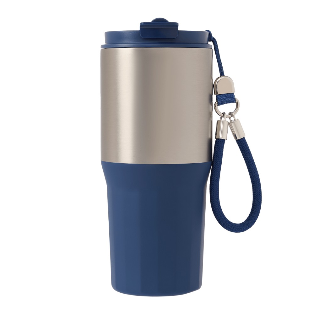 Внутренний слой из пищевой стали 304 марки, которая не впитывает запахи, не окисляется и сохраняет вкус напитка. Внешний корпус надежно защищен 201 сталью с комбинированным покрытием, где матовая текстура сочетается с гладким акцентом. В комплекте идет удобный, прочный и легко снимаемый ремешок, который превращает термокружку в идеальный аксессуар для активного образа жизни.