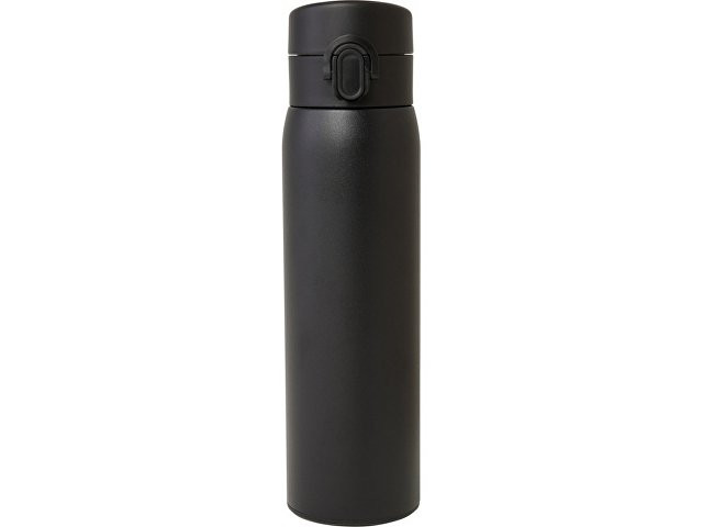 Стильная фляга-термос из переработанной нержавеющей стали, сертифицированная RCS, с простым механизмом открытия с помощью кнопки. Фляга герметична, а благодаря медной вакуумной изоляции напитки будут сохраняться горячими или холодными в течение нескольких часов. Объем составляет 450 мл. Поставляется в подарочной коробке из переработанного картона. Recycled stainless steel, Recycled PP Plastic. Packaging: FSC Mix Credit P5.1 CU-COC-877277.