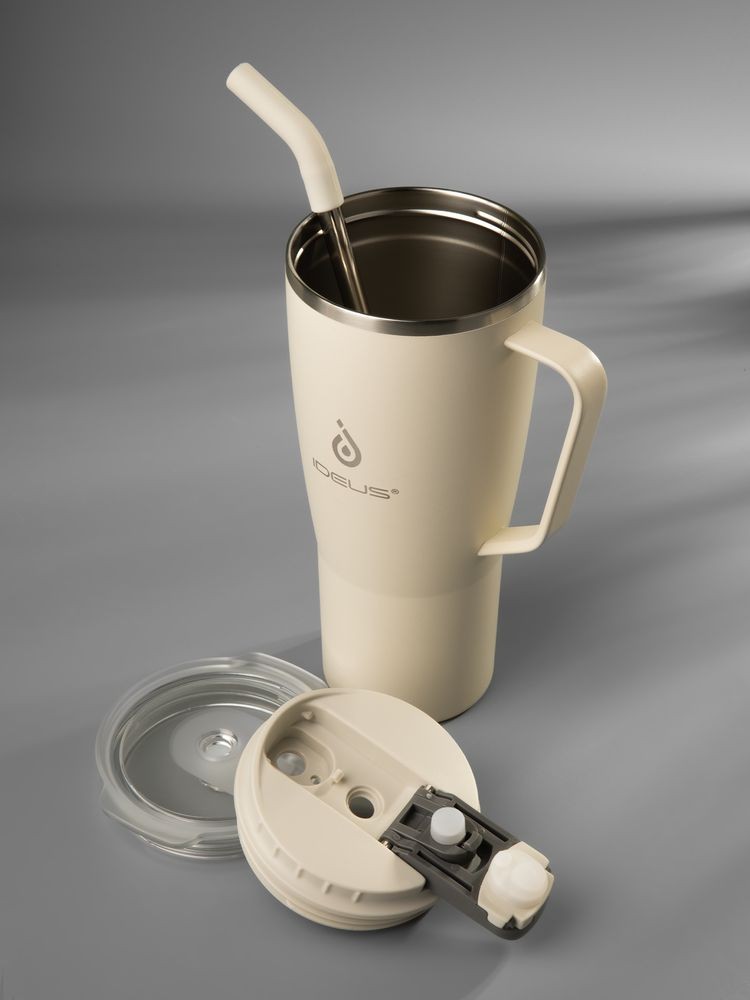 2 крышки в комплекте: одна на 100% герметичная с механизмом блокировки отверстия для питья, вторая — с отверстием для трубочки