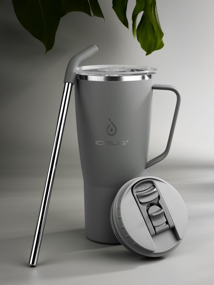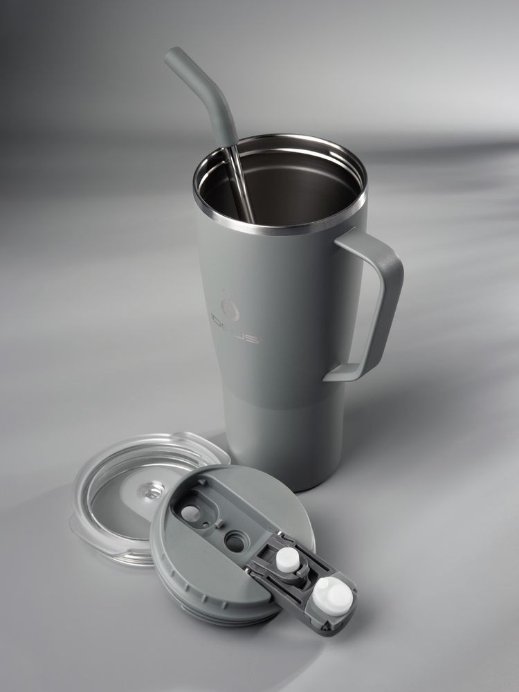2 крышки в комплекте: одна на 100% герметичная с механизмом блокировки отверстия для питья, вторая — с отверстием для трубочки