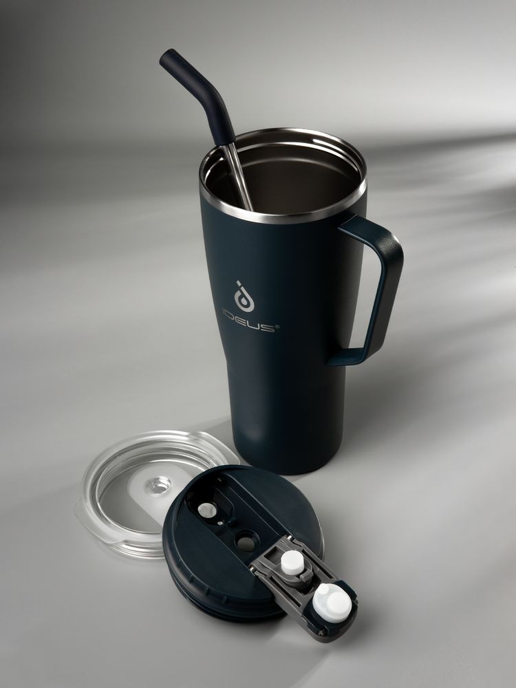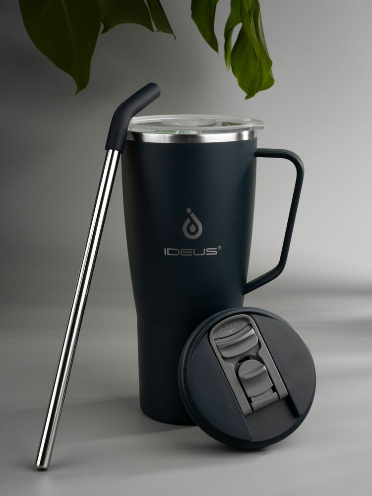 2 крышки в комплекте: одна на 100% герметичная с механизмом блокировки отверстия для питья, вторая — с отверстием для трубочки