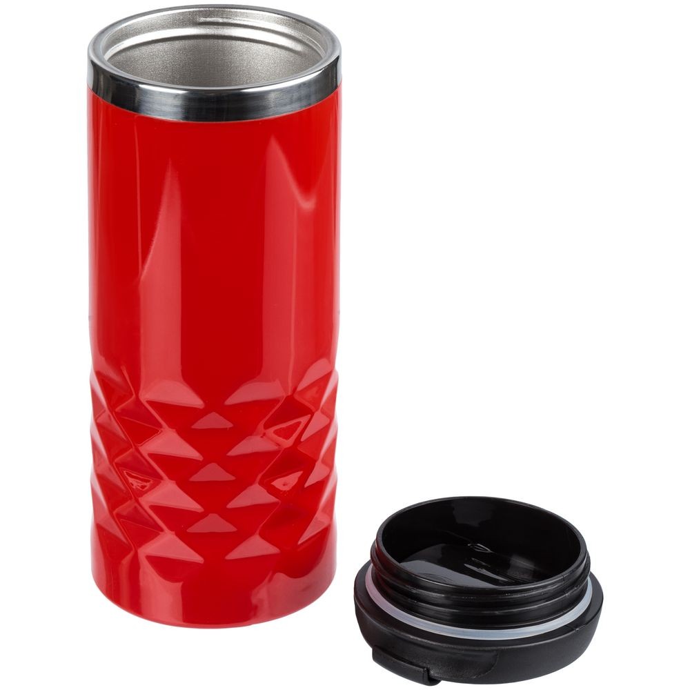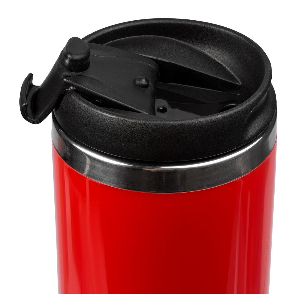 Двухслойная конструкция из пластика снаружи и пищевой нержавеющей стали внутри. Герметичная завинчивающаяся крышка с откидным клапаном для питья.